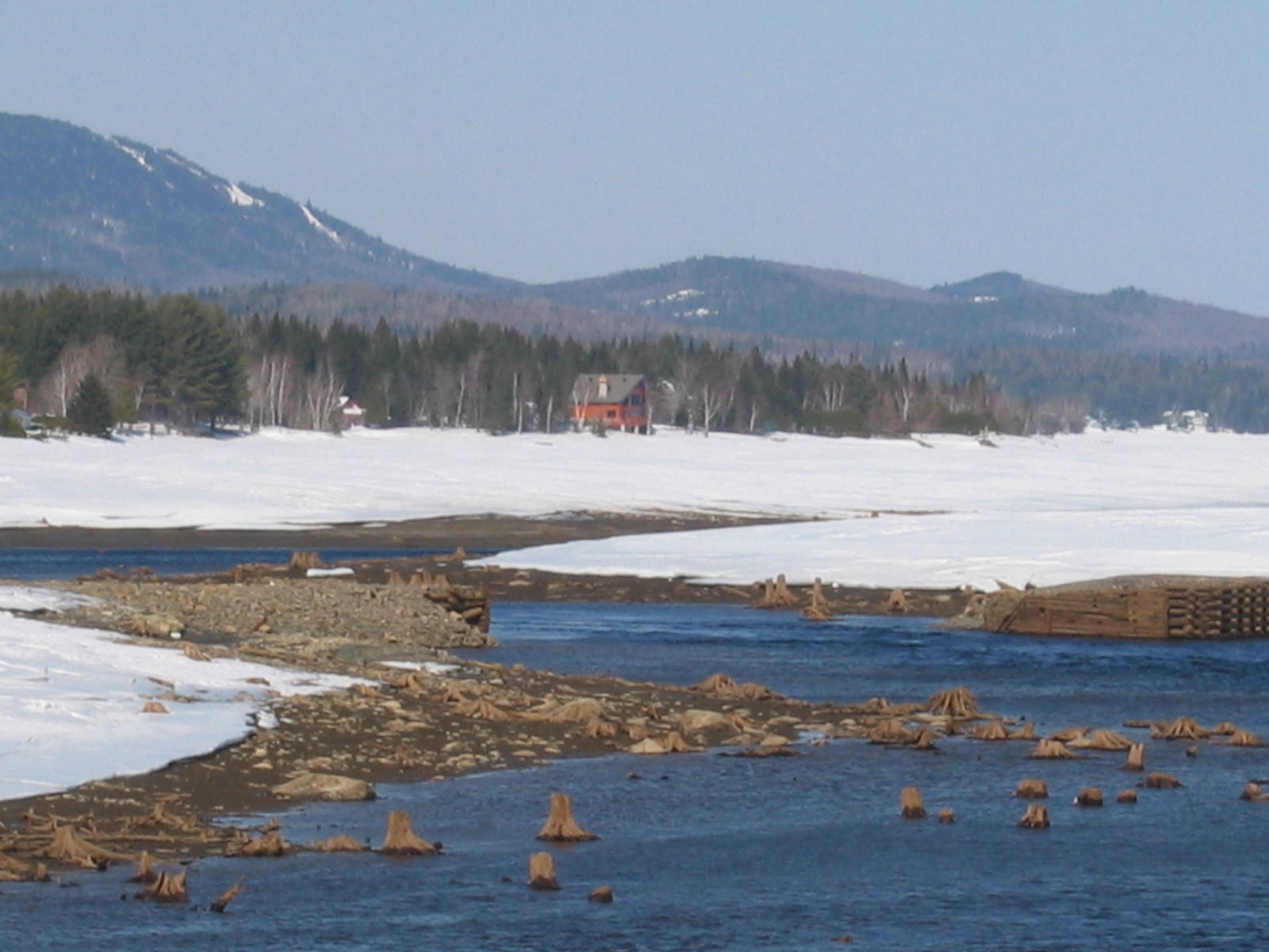 Lac au printemps, ancient barrage à droite